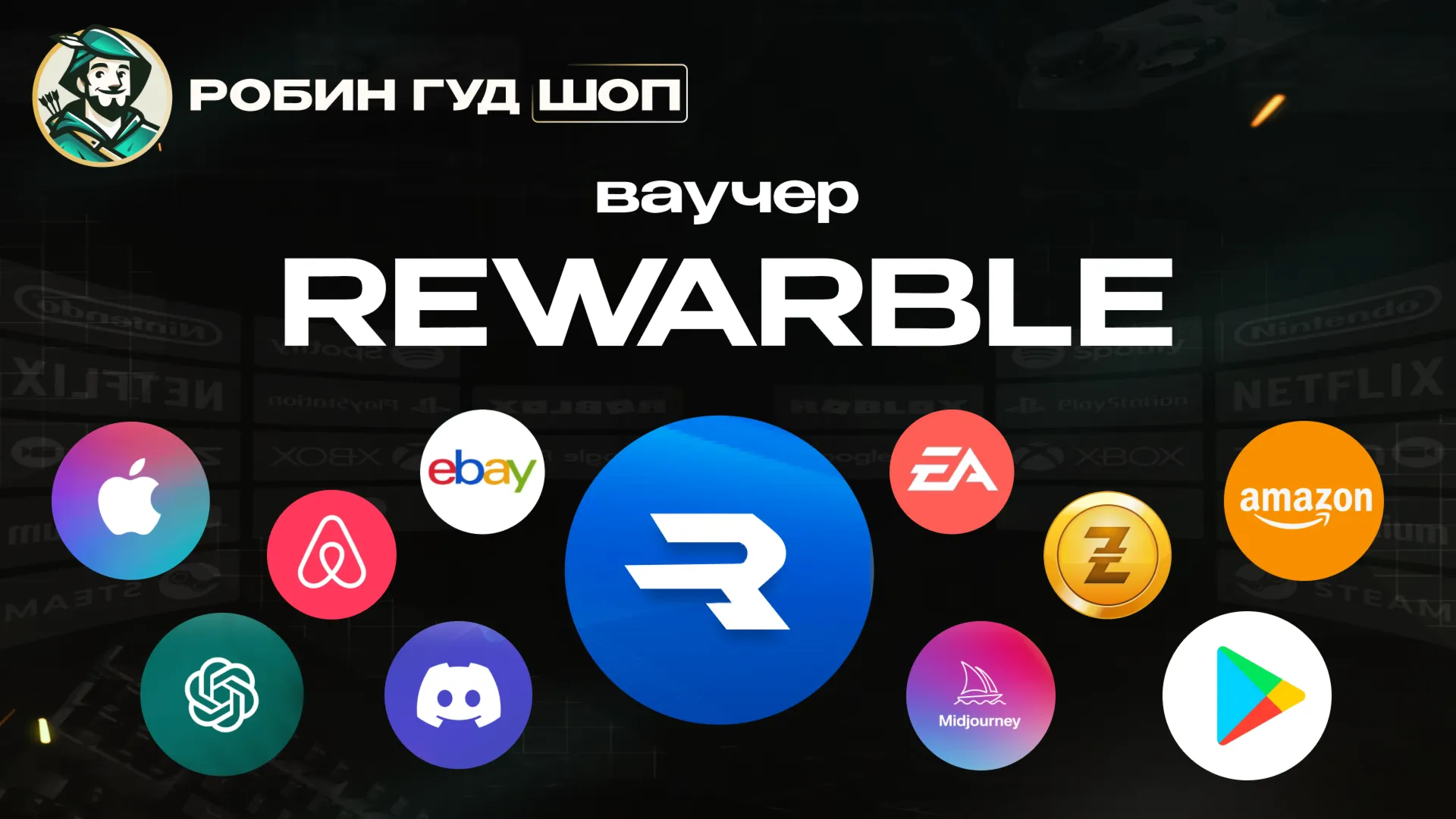 Ваучер Rewarble позволяет создать предоплаченную карту, с помощью которой можно оплачивать любые цифровые товары и услуги в интернете. Используйте её для подписки на ChatGPT Plus, Google Play, PayPal, OnlyFans, Steam, Airbnb, eBay, Spotify, Netflix, Discord, Astropay и другие международные платформы.